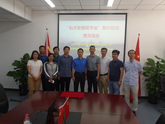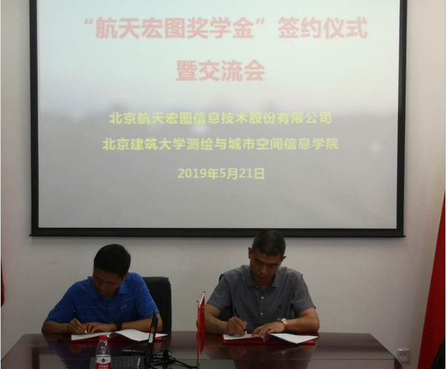 5月21日上午,测绘学院与北京航天宏图信息技术股份有限公司在我校大兴校区学院楼F座举行“航天宏图奖学金”签字仪式暨交流会。北京航天宏图信息技术股份有限公司副总经理马欣、技术总监沈均平、人力资源经理白松涛、高级工程师葛慧斌,测绘学院党委书记王震远、副院长赵江洪、院长助理刘祥磊、遥感系主任朱凌、副主任吕京国、辅导员施建民参会。会议由学院党委副书记冯永龙主持。