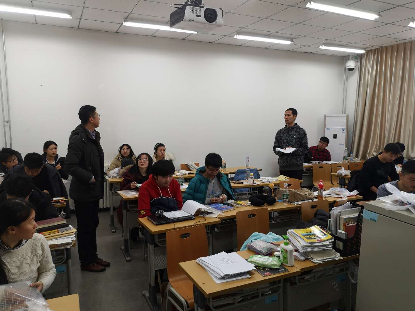 王震远表示赞赏大家的选择,他提到,考研备考是个系统的过程,要明确目标,坚定必胜的信念,端正良好的心态,打好攻坚战,为考研成功做好充分的准备。冯永龙对考风考纪提出了要求,提醒同学们注意考试时间、地点、证件等细节,并同大家交流备考的有关具体问题和需求。