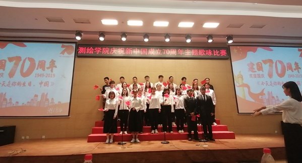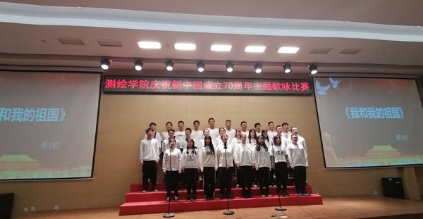 10月29日晚,测绘学院庆祝新中国成立70周年主题歌咏比赛在图书馆建本报告厅举行,18、19级本科生和19级研究生共九个班以班级为单位组队参赛,在金秋十月,“歌颂新中国,唱响新时代”,向祖国表达真挚的情感、献上真挚的礼物。