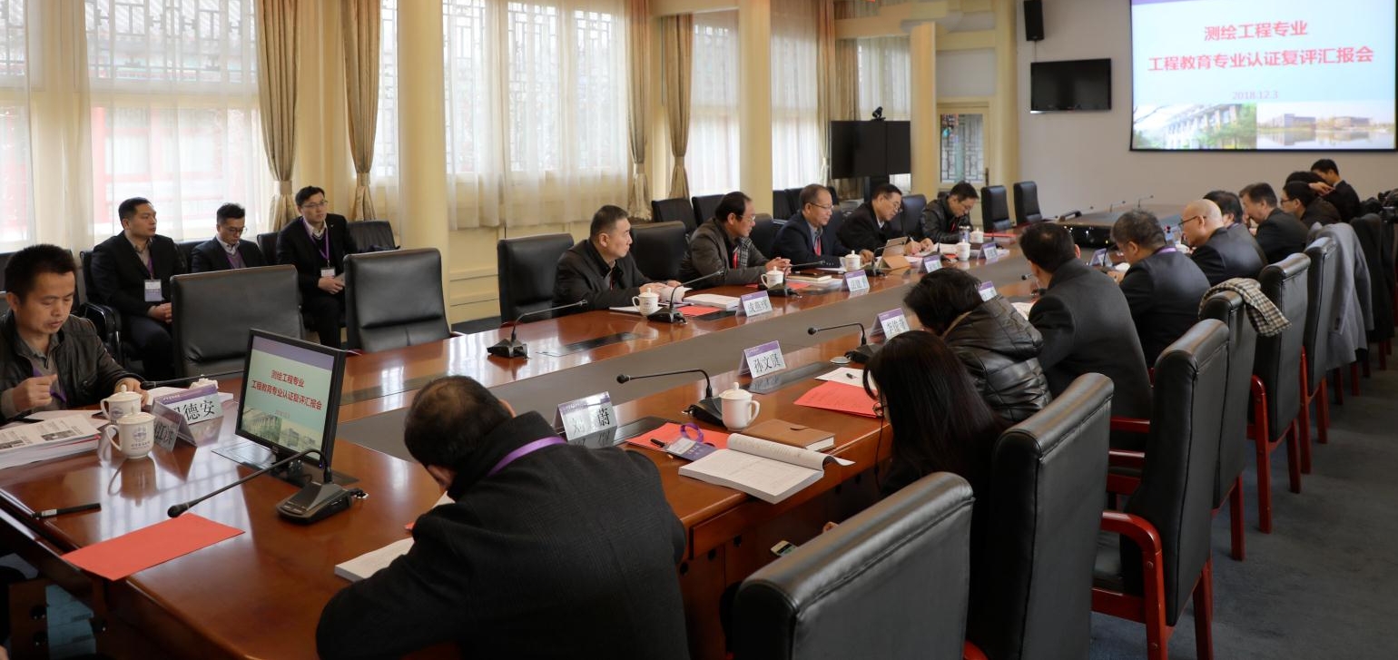 2018年12月3日上午,我校测绘工程专业工程教育专业认证复评汇报会在四合院会议室召开。认证专家组组长辽宁工程技术大学宋伟东教授、成员河海大学岳建平教授、浙江省测绘与地理信息局陈建国、观察员陕西省测绘与地理信息局成燕辉、秘书辽宁石油化工大学张健,我校副校长汪苏、副校长李爱群和党政办、教务处、人事处、财务处、招就处、资产处、学工部、团委、网信中心、图书馆负责人、测绘学院班子成员、测绘工程专业负责人、教师代表参加汇报会。汇报会由副校长汪苏主持。