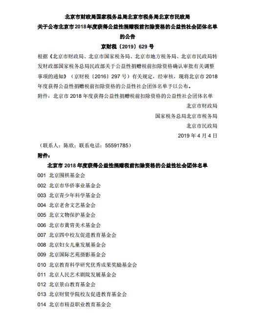 开云电竞pg软件教育基金会获得北京市2018年度公益性捐赠税前扣除资格