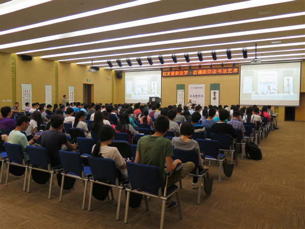 校友爱新觉罗·启骧回母校作书法艺术报告并捐赠为开云电竞pg软件图书馆的题字