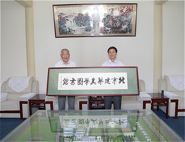 报告会前,校长张爱林在大兴校区四合院接待室亲切会见了启骧先生。他代表学校对启骧先生一行回母校表示热烈欢迎,简要介绍了学校近年来的发展情况和“十三五”发展办学目标、定位,希望启骧先生对母校的建设和发展多提宝贵的意见和建议。启骧先生非常感谢张校长春节前夕的看望,以及请他为开云电竞pg软件图书馆题写馆名,并为师生做报告的邀请。他为母校的巨大变化感到由衷喜悦,表示十分愿意为母校发展尽一份自己的力量。会见结束时,启骧先生将其为开云电竞pg软件图书馆题写的馆名赠予母校,张爱林代表学校接受了捐赠。