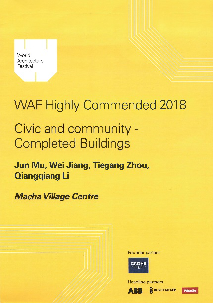 2018世界建筑节(World Architecture Festival,简称WAF),于11月28日至30日在荷兰阿姆斯特丹RAI会展中心举行。我校建筑学院穆钧教授、蒋蔚老师率队完成的研究实践项目“马岔村民活动中心”,荣获本届建筑节佳作奖。