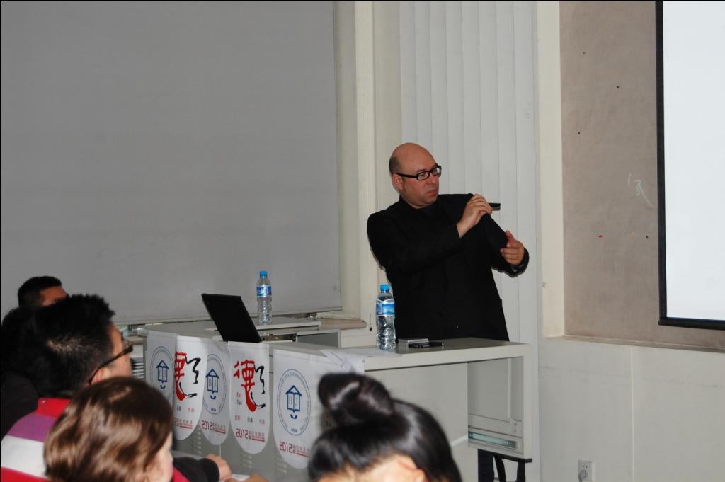 2012年4月26日(周四),由建筑学院建筑研究生会举办的学术讲座:“美妙的灵魂——建筑几何学与人类愿望的完美交织”在建筑与城市规划学院多功能厅顺利举行。作为建筑学院学术年会系列活动之一,讲座邀请了世界著名建筑大师、上海世博会奥地利馆设计者、奥地利SPAN事务所创始人马德朴和马宁格参加。讲座主要就计算机模拟技术对建筑设计的影响和建筑师的人文情怀展开讨论。马德朴首先为大家介绍了SPAN事务所的基本情况,之后就建筑的广度、镶嵌、参数化设计体系进行了详细的分析。提倡一种建筑设计、甲方单位、结构、管道等各工种协同配合的新型设计模式,并以上海世博会奥地利馆为例,进行了系统的说明。参加讲座的同学和研会相关工作人员积极参与到提问与讨论的过程中,就软件应用与技术性问题、参数化设计是否抹杀了设计师的创造力、参数化设计是以功能为主还是以形式为主等问题与马德朴进行了交流。整个交流会时间长达两个半小时,气氛融洽。