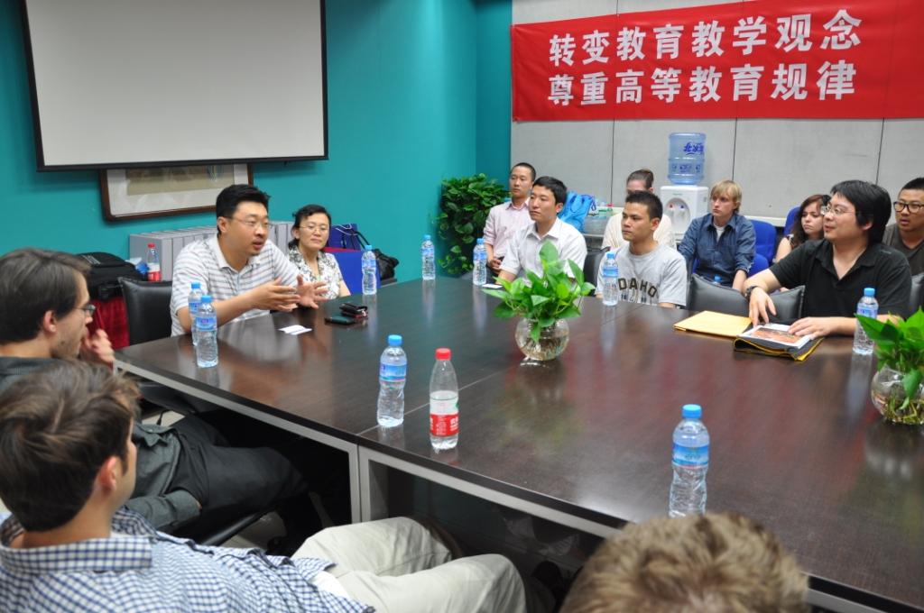 建筑学院马英副院长代表学院首先对美国爱达荷艺术与建筑学院师生代表团的来访表示欢迎,并就北京建筑工程学院建筑与城市规划学院的相关情况作了详细介绍,胡晓博士也相应的介绍了美国爱达荷艺术与建筑学院的相关情况。随后,美国爱达荷艺术与建筑学院师生代表团在建筑学系李春青老师、晁军老师的陪同下分别参观了建筑学院橱窗展示及教学实验设备。最后,美国爱达荷艺术与建筑学院师生代表团在实验5号楼201与建筑学院师生就建筑学教学及学习进行了深入的交流和探讨。