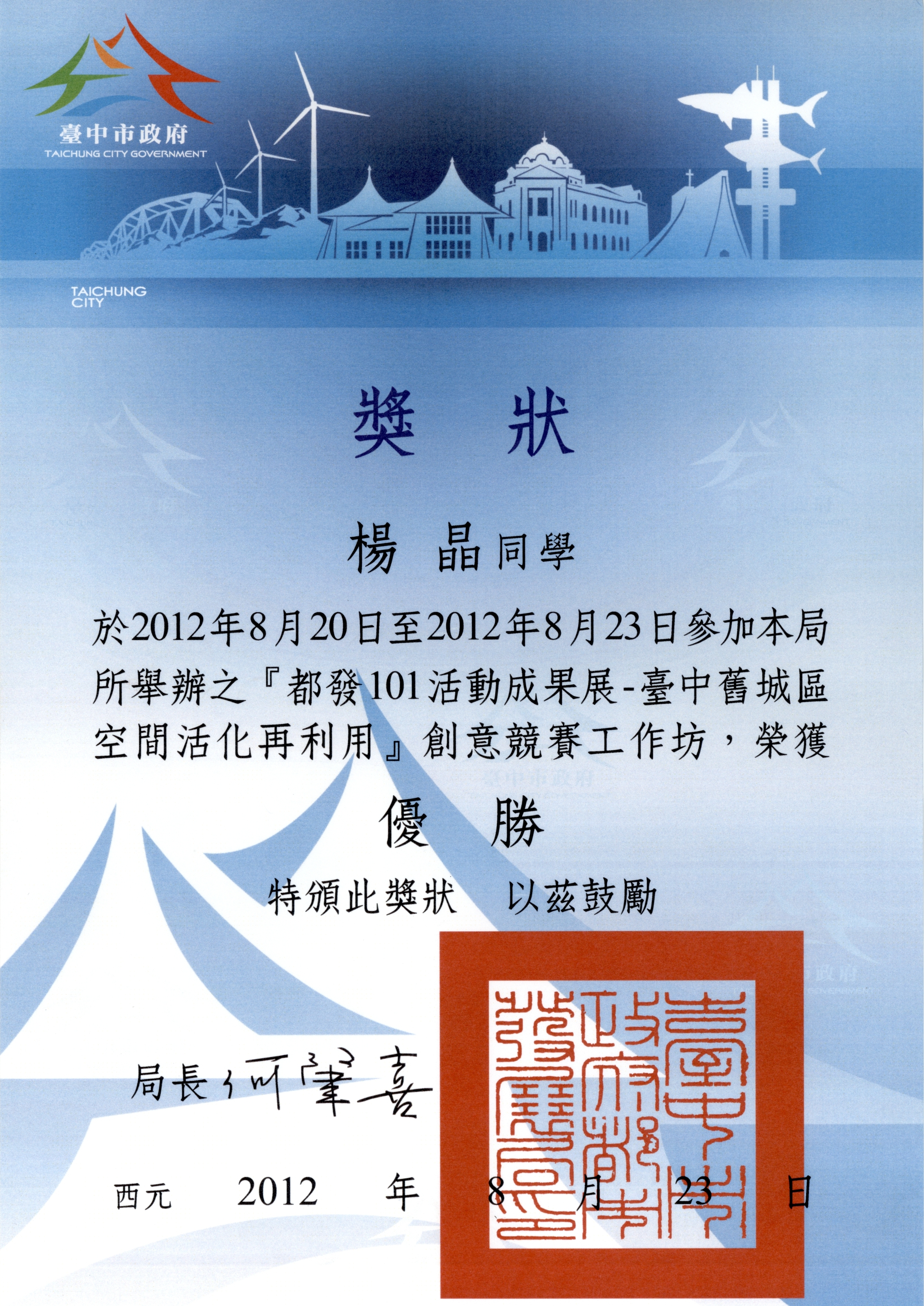 2012年8月19日~8月26日,建筑与城市规划学院丁奇老师、苏毅老师、陈栋老师带领4名研究生应邀赴台湾逢甲大学参加了“两岸创意竞赛工作坊-台中旧城区空间活化再利用”活动。该活动以如何改善老旧市区环境质量,促使城市土地永续发展及再利用,并塑造一个具有特色及健全生活机能,适合居住的良好生活环境,为方向目标,提出两岸建筑名校师生交流的活动,各派出队伍加入工作坊脑力激荡互相合作、友善竞赛,提出具创意、创新的发展构想,提供对于未来台湾台中市旧市区规划的建议与参考。本次工作坊交流竞赛之工作坊学员主要由北京建筑工程学院、逢甲大学、成功大学、东海大学、台中科技大学各校建筑系及空间设计学系派队参与交流竞赛。
