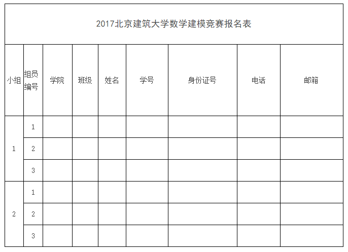 1、每二级学院(文法学院除外)参赛队数的上限无限制,但每个学院至少要有两队参赛。在竞赛结束前,参赛队将论文电子版以电子邮件附件形式提交,以参赛队为单位发送到buceamodel@163.com;打印纸质版论文提交,提交截止时间为2017年5 月 23 日(周二)17 时,地点另行通知。