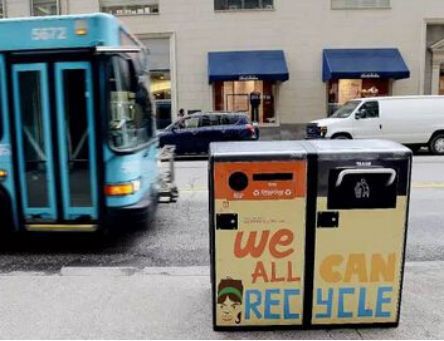 ▼ 美国 布鲁克林街道 BigBelly智能垃圾桶(图片来自于网络)