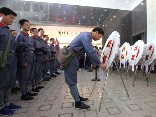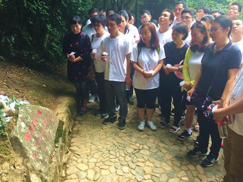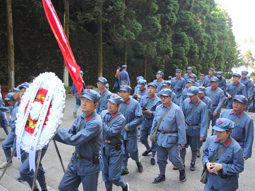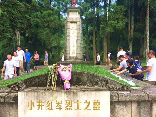 在小井红军烈士墓吊唁革命先烈,敬献小白花