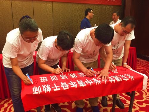 学校党委副书记张启鸿,党委教师工作部部长陈红兵,井冈山文化教育学院常务副院长吴?巴特尔为培训班学员授班旗