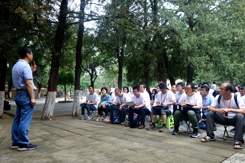 在杨家岭革命旧址前学习延安大学张文生教授现场教学课《不忘初心,牢记使命,坚持走民主之路,跳出历史周期率》