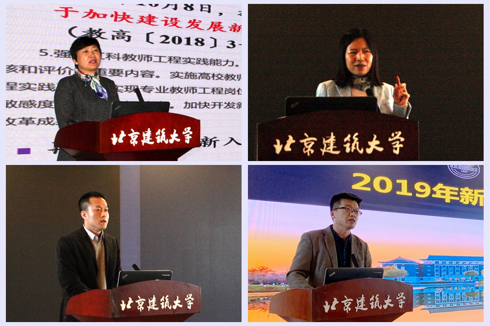 土木学院结构工程学科负责人、博士生导师张艳霞教授,测绘学院“青年北京学者”、“长城学者”侯妙乐教授,首都高校青年教师教学基本功比赛一等奖获得者、经管学院丁锐老师,教师工作部副部长李大伟分别与新教工分享了青年教师工程实践培养经验,科研项目设计与申报、课程设计方法与教学技巧,以及“课程思政”建设的深远意义和实践价值。