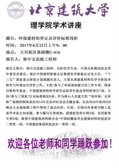 理学院学术讲座——环保建材的界定及评价标准浅析