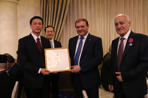 我校代表团出席了27日晚在亚美尼亚国家歌剧院举行的亚美尼亚国立建筑大学95周年校庆庆典,亚美尼亚教育部长向亚美尼亚国立建筑大学的功勋教师颁发了奖章和证书,随后是校庆文艺演出,亚美尼亚国立建筑大学师生表演了体现学校悠久历史和浓郁民族特色的节目。