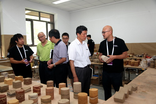 启动仪式结束后,校领导和指导老师一同前往教五楼参观“生土建筑国际工作营工作现场”。