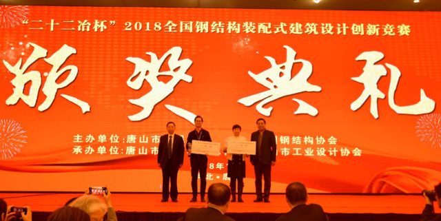 “二十二冶杯”2018 全国钢结构装配式建筑设计创新竞赛由中国钢结构协会、唐山市人民政府共同组织,以“绿色唐山·创意钢构”为主题。来自设计院、企业、高校等组成的23个设计团队参加比赛,最后评选出特等奖1项(中国二十二冶集团有限公司、中冶建筑研究总院有限公司、清华大学代表队的心悦华府作品),一等奖2项(中国京冶工程技术有限公司、同济大学代表队的城市魔方作品,开云电竞pg软件、多维联合集团有限公司代表队的唐山之窗-综合办公楼方案设计作品),二等奖5项,三等奖7项,优秀奖8项。