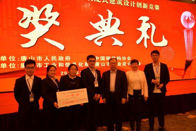 由中国钢结构协会、唐山市人民政府共同组织的“二十二冶杯”2018全国钢结构装配式建筑设计创新竞赛12月19号在河北唐山举行,由张爱林教授的带领的我校高精尖创新中心钢结构团队和多维联合集团共同完成的作品“唐山之窗”荣获大赛一等奖(金奖)。我校设计团队获奖成员有:张爱林、张艳霞、谢志强、郑明召、黄威振、王彦、江锟、林海鹏、孙宇、朱莉娜、李全刚。项目答辩人:赵文占(多维联合集团员工,我校钢结构团队培养的2016届硕士毕业生)。