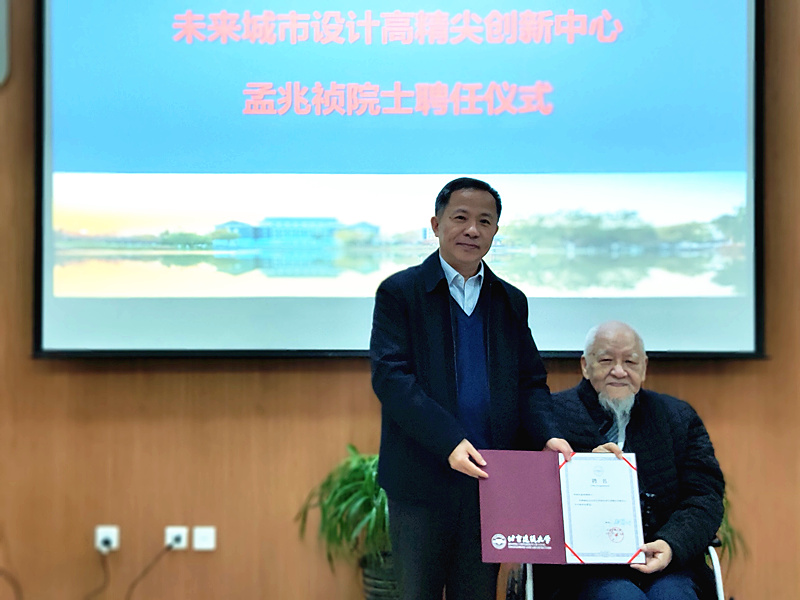 2019年1月14日,我校举行聘任仪式,聘请中国工程院院士、北京林业大学园林学院教授孟兆祯为未来城市设计高精尖创新中心学术委员会委员。副校长张大玉出席聘任仪式,高精尖中心办公室、建筑与城市规划学院等相关部门负责人参加聘任仪式。