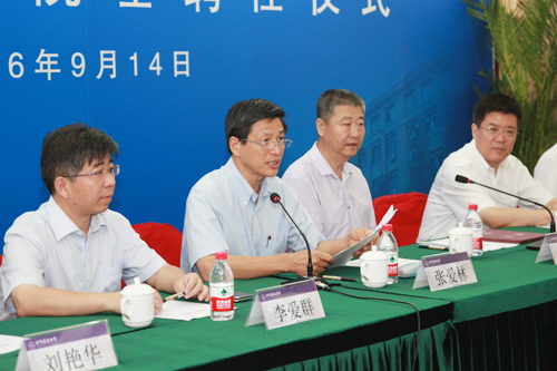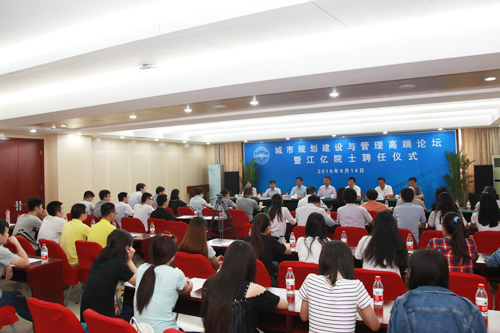 张爱林在聘任仪式上讲话。他首先代表学校对江院士长期以来对学校的关心和指导表示衷心感谢,对江院士为我国城市发展和建筑行业做出的重要贡献表示赞许。他简要介绍了学校“十三五”事业发展规划和“北京未来城市设计”高精尖创新中心基本情况。他讲到,学校举办城市规划建设与管理高端论坛暨江亿院士聘任仪式,是贯彻落实“创新、协调、绿色、开放、共享”五大理念,按照“双一流”建设导向,创新人才观和创新大学观的具体举措,就是请江院士来指导我校建设具有鲜明建筑特色的创新型大学,指导“北京未来城市设计”高精尖创新中心建设。把我校高精尖创新中心服务北京,特别是服务北京城市副中心建设的成果落地,为北京建设成为国际一流和谐宜居之都和国家建筑业转型升级提供科技创新成果和创新人才支撑。