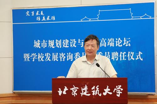 校长张爱林在聘任仪式上讲话。他首先代表学校对仇部长长期以来对学校的关心和指导表示衷心感谢。他说,在学校“十三五”开局之年和“提质、转型、升级”关键节点,举行城市规划建设与管理高端论坛暨学校发展咨询委员会委员聘任仪式,是落实习近平总书记系列重要讲话精神和中央城市工作会议精神的具体举措。通过持续举办国内外高端研讨、创新研究,推进符合中国国情和北京市情的城市设计、规划、管理建设,提高城市管理水平和工程管理水平,进一步加快北京“未来城市设计高精尖创新中心”建设,不断提升学校的办学水平和办学层次。